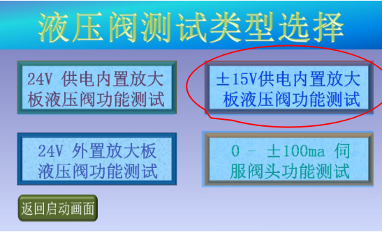 3、確認現(xiàn)場人員和設備安全后,點擊“進入測試”,進入液壓閥測試類型選擇畫面;