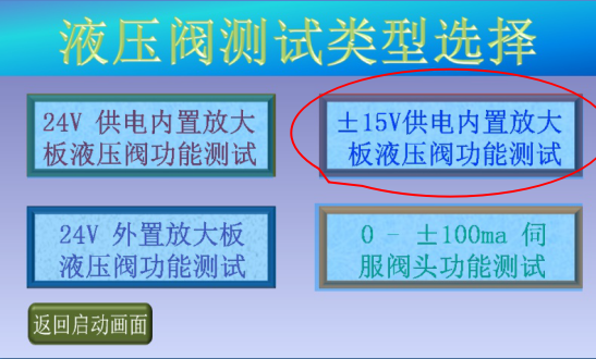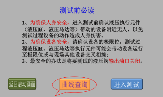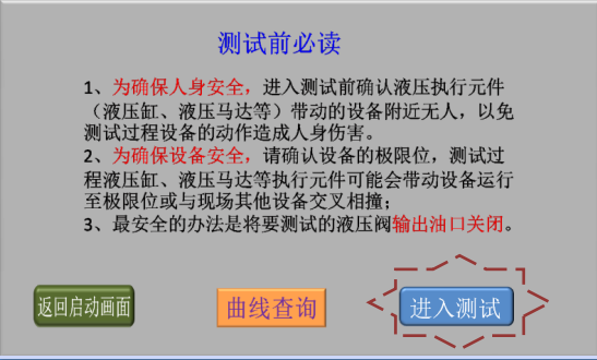 3、確認(rèn)現(xiàn)場人員和設(shè)備安全后,點擊“進入測試”,進入液壓閥測試類型選擇畫面;